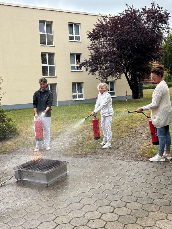 Die Sicherheit und das Wohlergehen unserer Bewohner:innen stehen für uns an erster Stelle. Um in Notsituationen richtig handeln zu können, nehmen unsere Mitarbeitenden regelmäßig an einer praxisnahen Brandschutzunterweisung teil. Diese wird von einem berufserfahrenen Feuerwehrmann durchgeführt, der nicht nur Fachwissen, sondern auch wertvolle Erfahrungen aus dem Einsatzalltag mitbringt.
